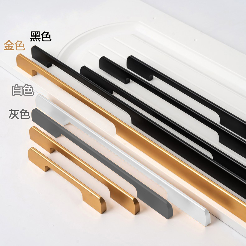 Light luxury extra long handle drawer closet door European kitchen gold long black handle aluminum alloy white long version