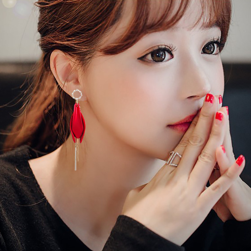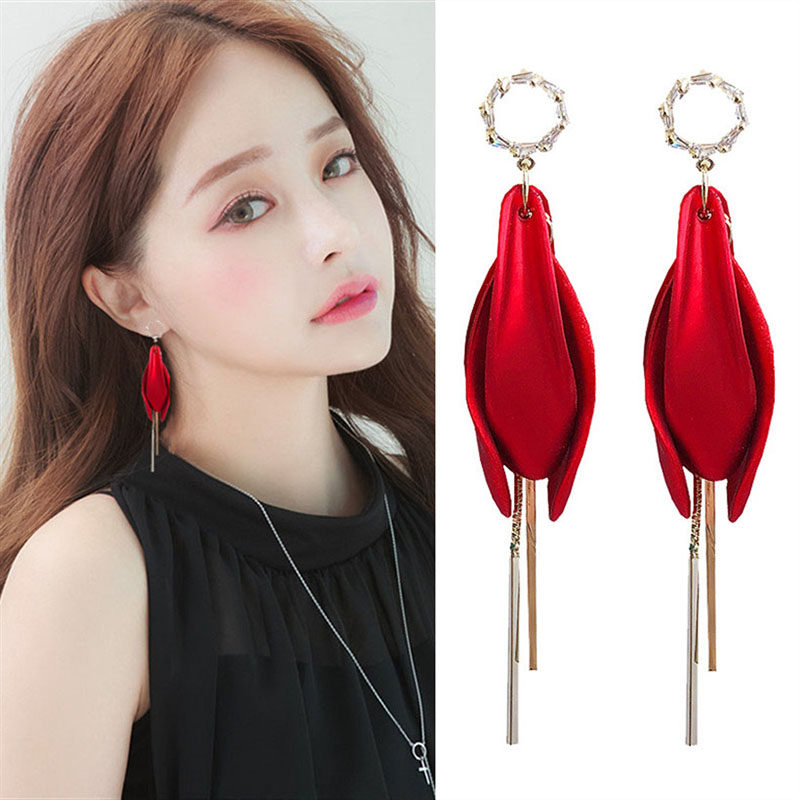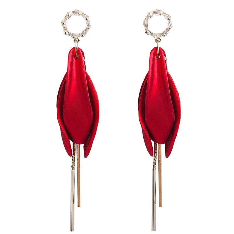 Exaggerated Red Petal Earrings Woman 2020 New Chaos New Year Temperament Long Version Streaming Suear Pendant Minimalist Net Red Earrings