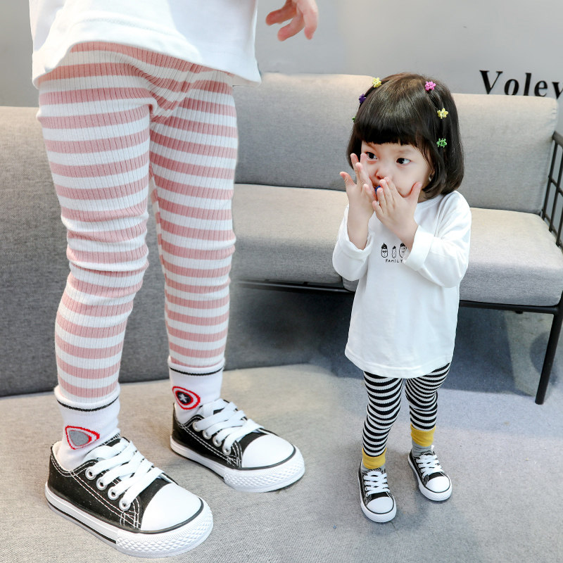 Girls black and white striped underwear spring and autumn 1-year-old baby 3 children outside wear high-elastic cotton long pants