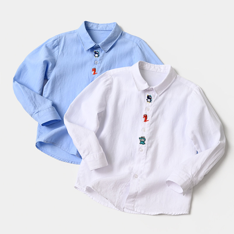 White 80002 small dinosaur shirt blue 80002 small dinosaur shirt 80002 white capsized embroidered dinosaur shirt 80002 blue capsized embroidered dinosaur shirt