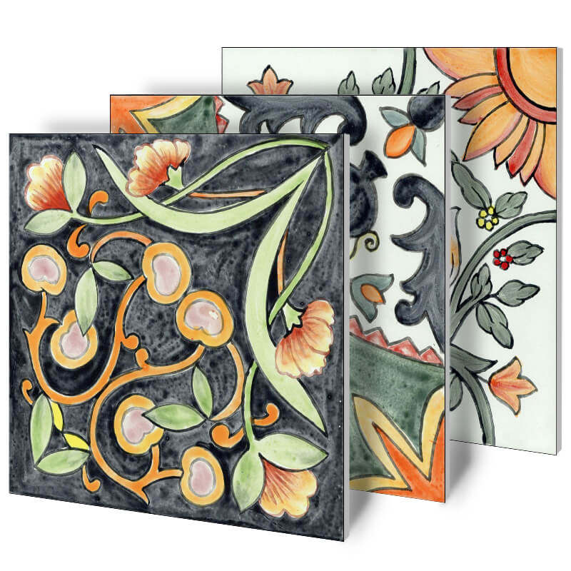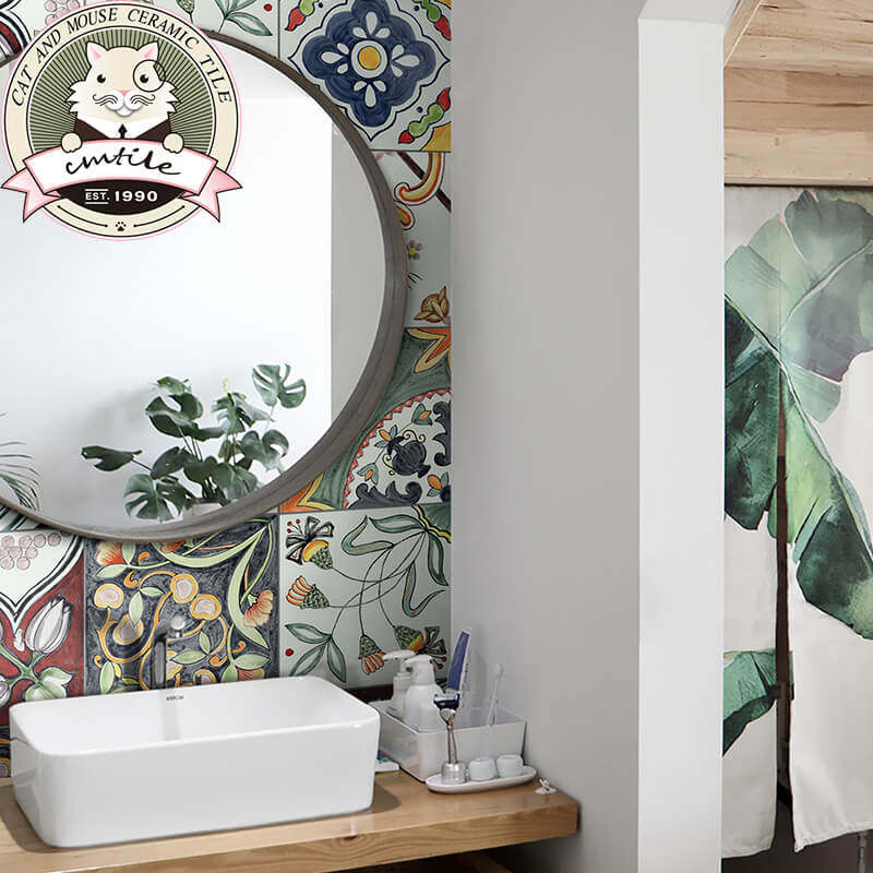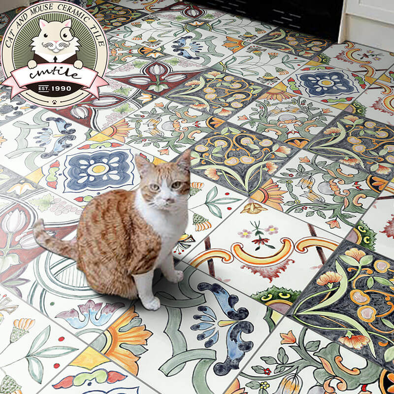 Ancient hand-painted flower brick Nordic kitchen dressing room background wall anti-slip antique brick idyllic impotence wall floor tiles