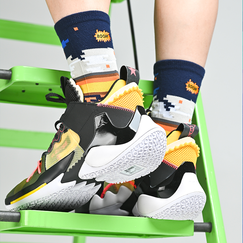 UZIS socks Basketball socks Retro pixel style socks Mosaic long tube sweat-absorbing towel socks trend sports socks men