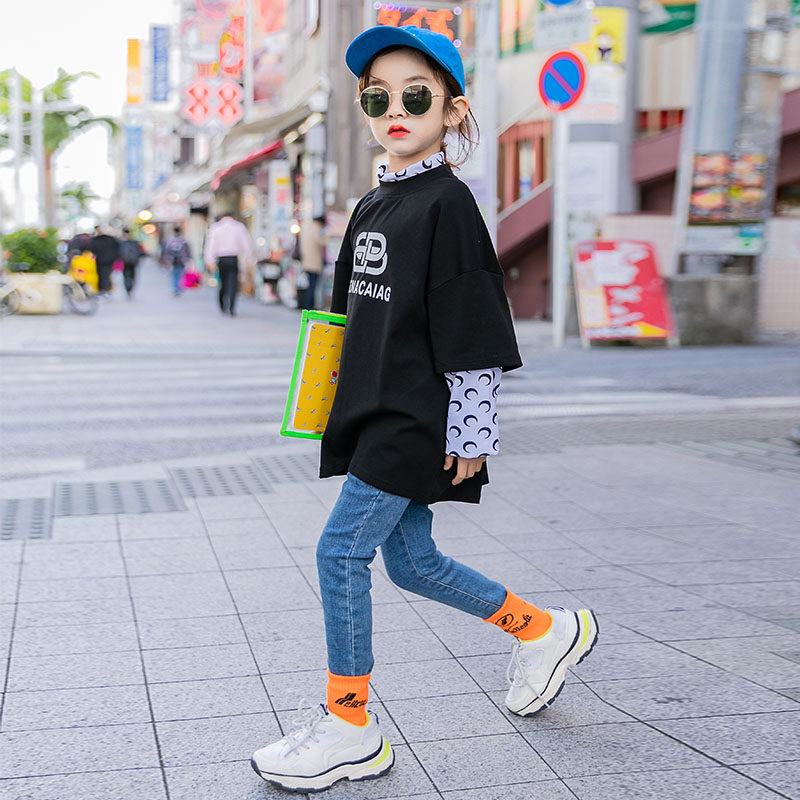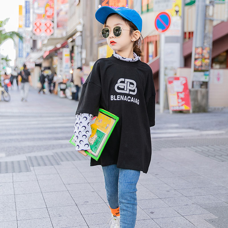 Girls T-shirts 2022 autumn new middle-aged children's Korean version of the fake two-piece long-sleeved loose bottoming shirt top trendy