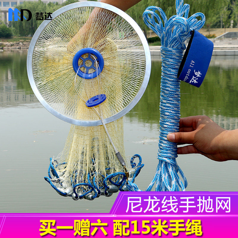 Mengda fishing net fishing net American-style casting net nylon line hand throwing net fishing net fishing automatic easy throwing net spinning net hand casting net