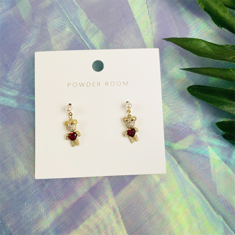 Korean Ornament Small Bear's heart-shaped ear nail Two optional fashion ornaments Do not accept the Withdrawal Goods Mind and Caution Beats