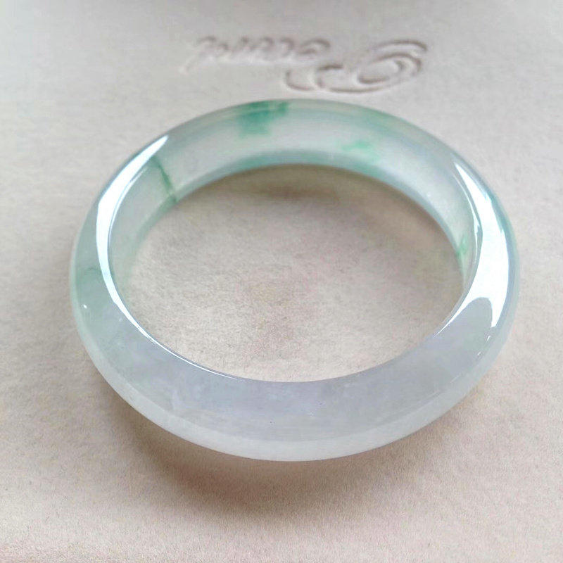 Natural Jade Bracelet Old Pit A Cargo Round Strip Qingshui Jade Bracelet Ice Species Concubine Floating Flower Jade Bracelet Women's Model with Certificate