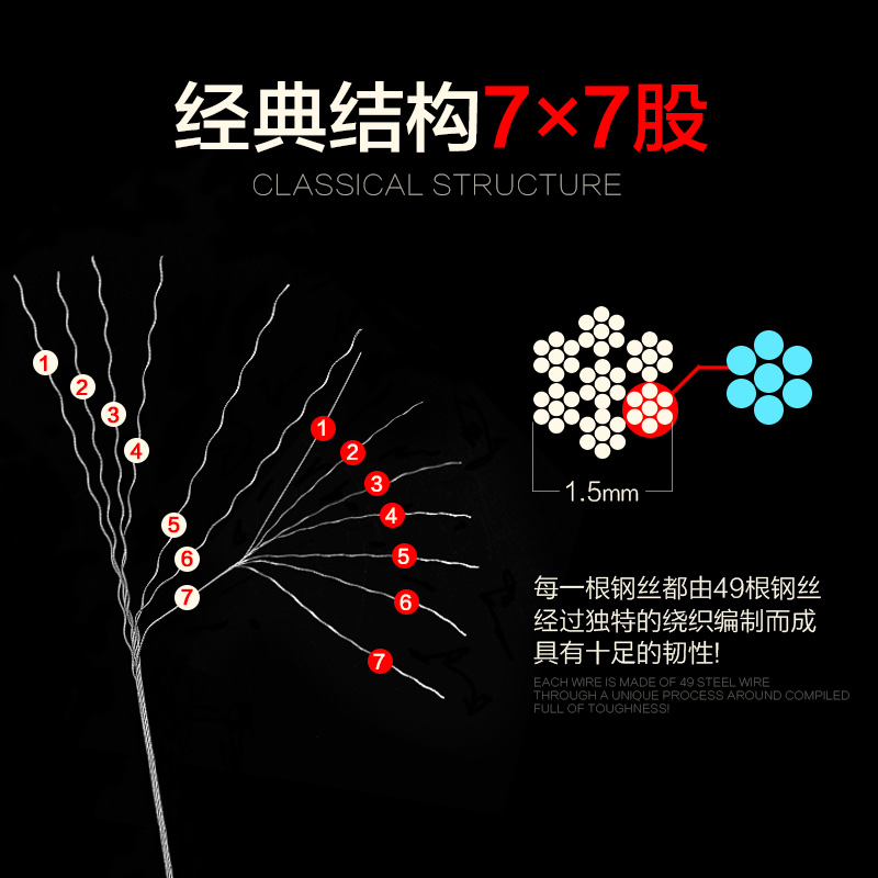 7 5 meters stainless steel wire rope(hand special) 10 meters stainless steel wire rope(hand plus high platform) Hand shake wire single (1 6 meters) 7*7 conventional two 8 meters each(30