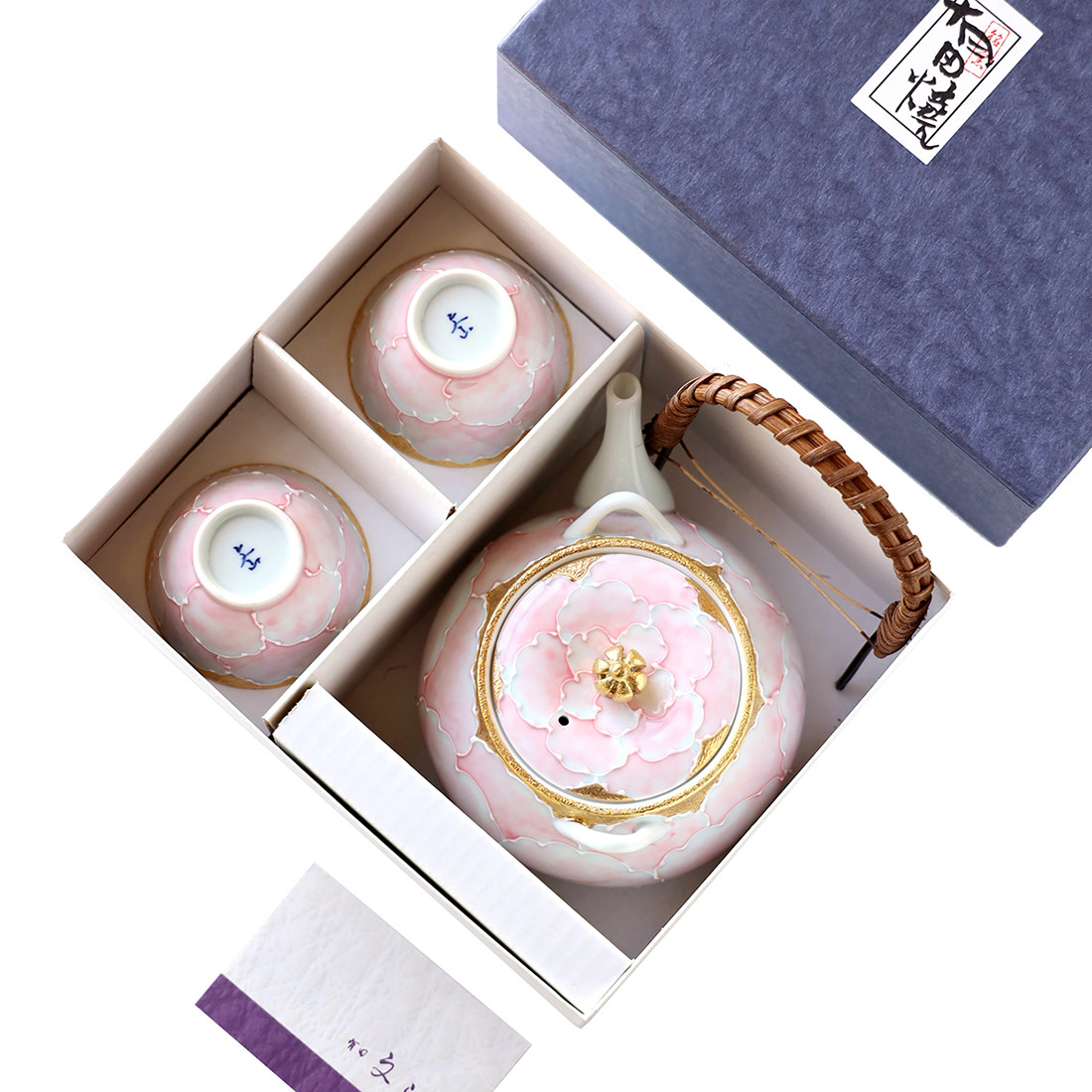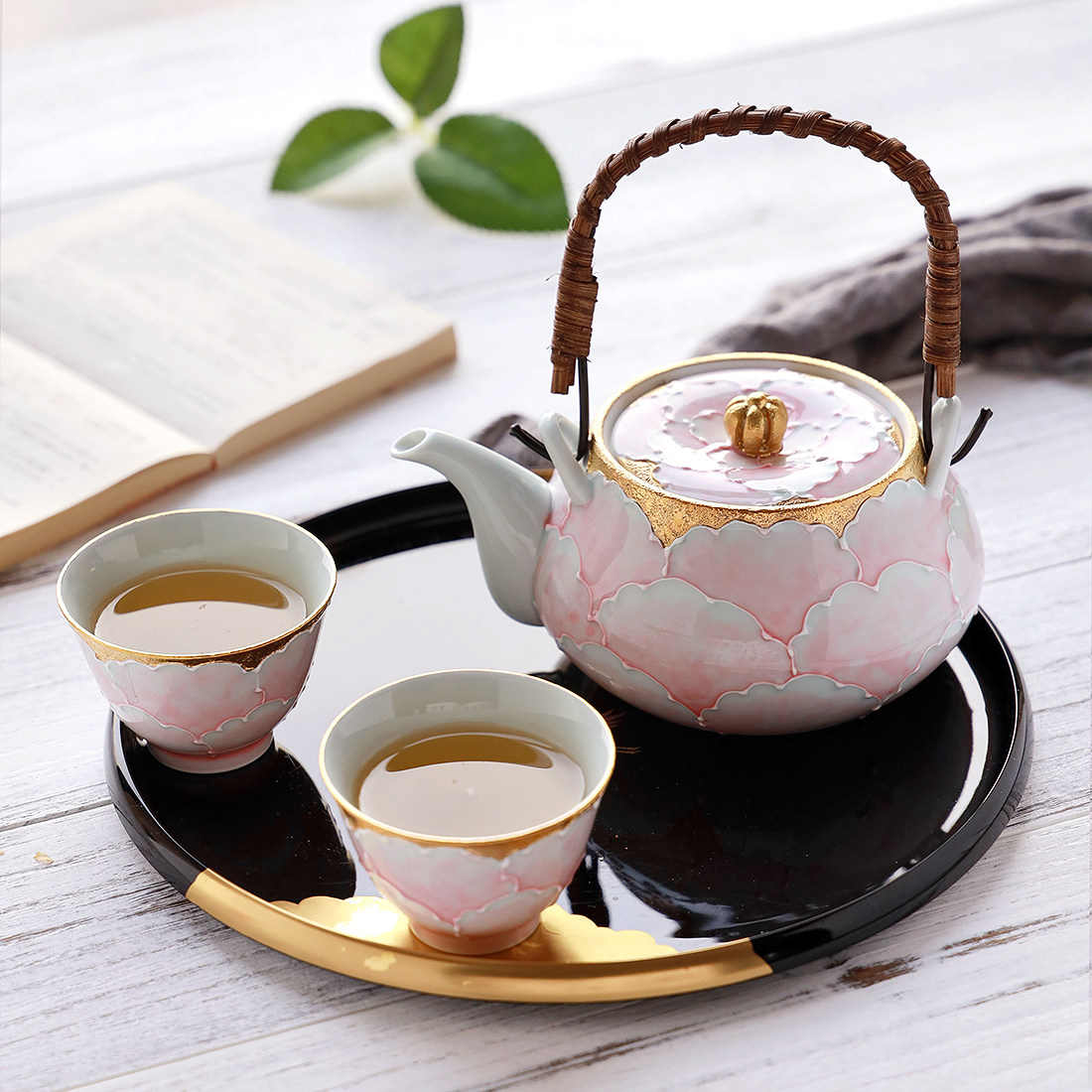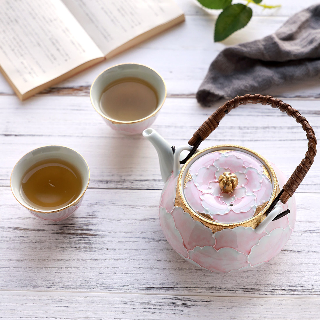 Japan imported Arita Burning Wenshan ceramic large-capacity portable beam Japanese teapot peony teacup gift box set