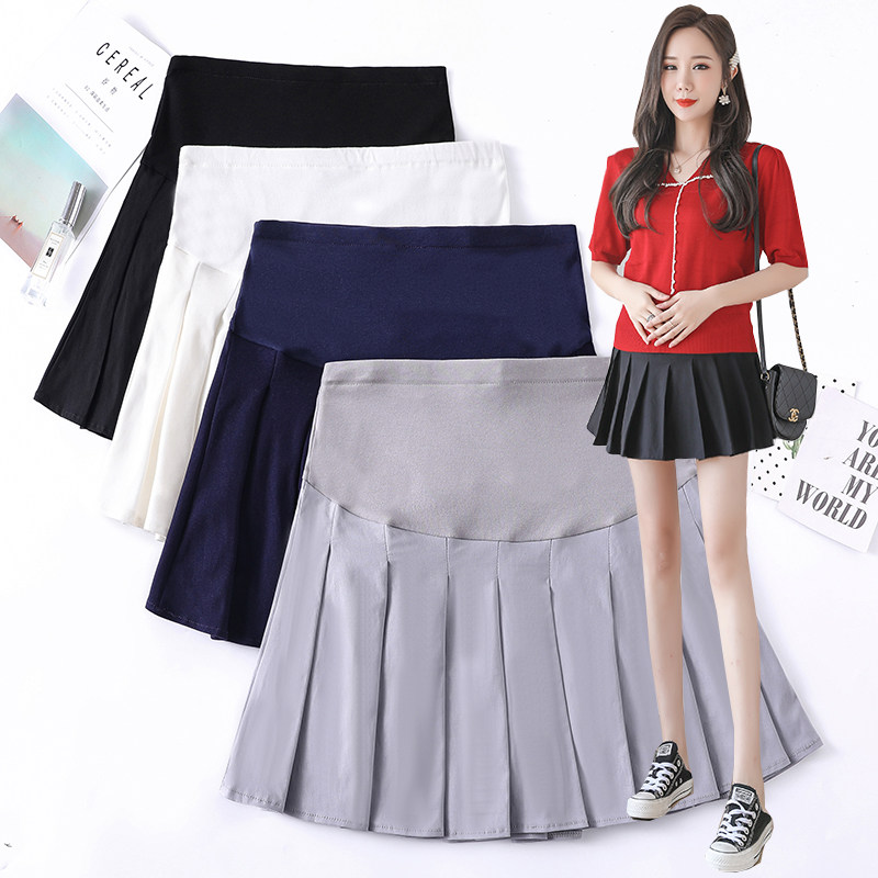 Maternity short skirt spring summer fashion 2020 to belly pleated female hot mom anti-light A line skirt summer maternity skirt