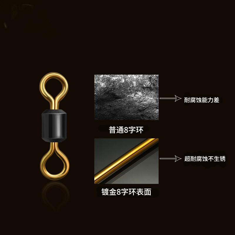 Competitive 8 word ring connector stainless steel bicolor gear rotating eight-word ring fishing small accessories Quick sub-wire clamp