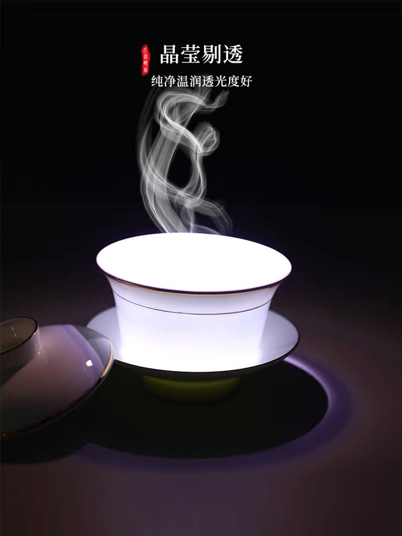 Bone China Phnom Penh Sancai Covered Bowl with Covered Single Tea Bowl Pure White Tea Cup Tea Bowl Thin Tire Ceramic Covered Bowl Cup