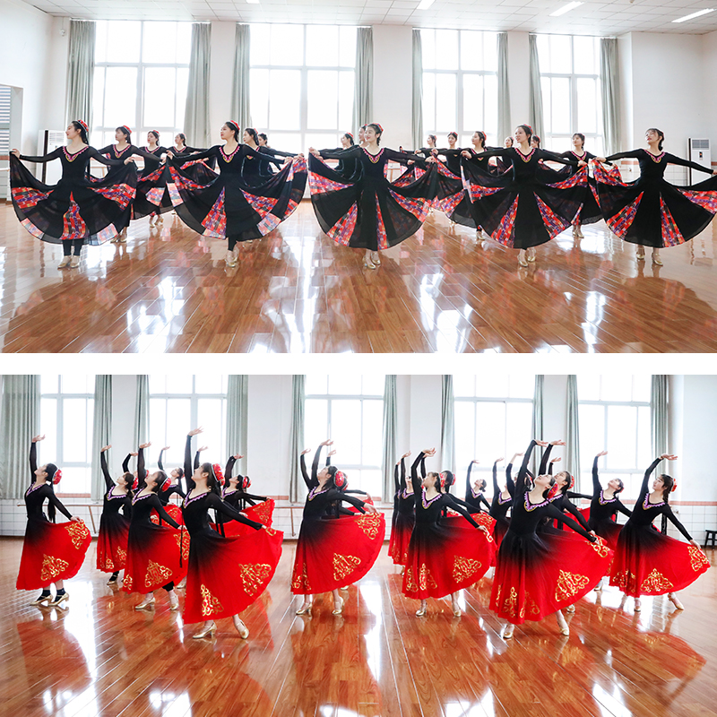 Vibe dance suit Xinjiang Uyghur ethnic group acting out of the art exam practice Long sleeves blouses square dance costumes women