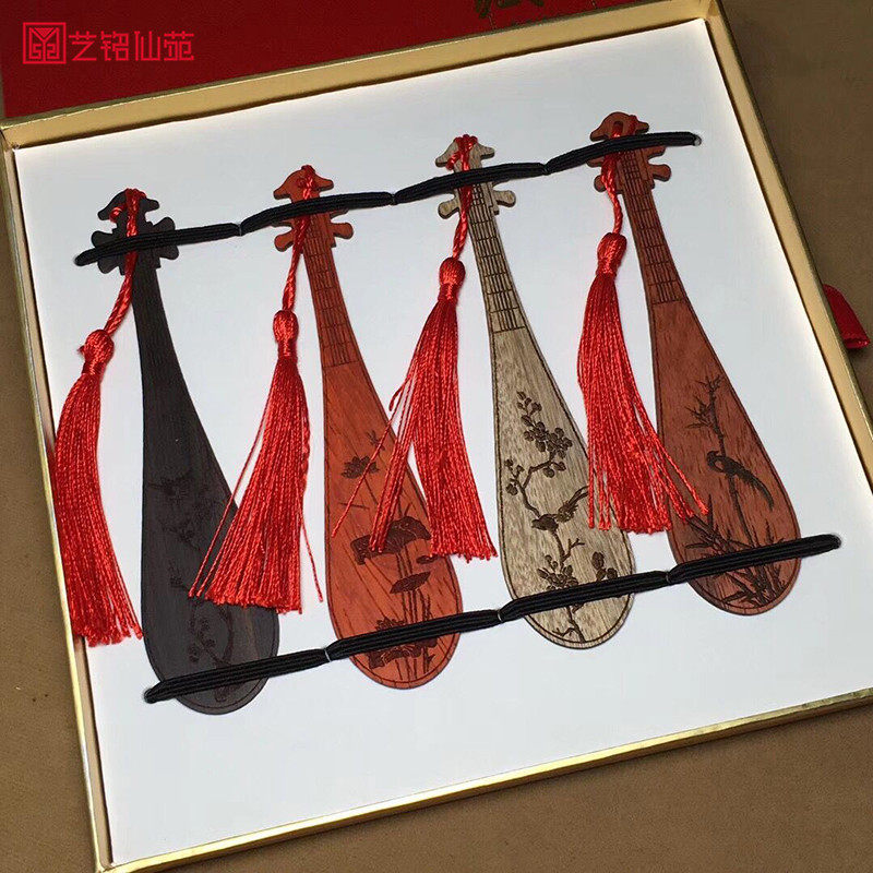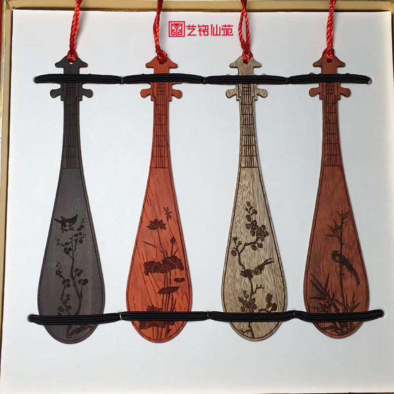 Red Wood Pipa Bookmark four sets of retro ancient little fresh Chinese Wind bookmarking creative gift Gift Gift Gift