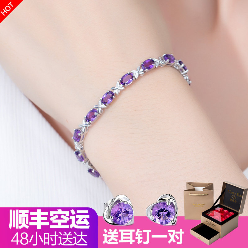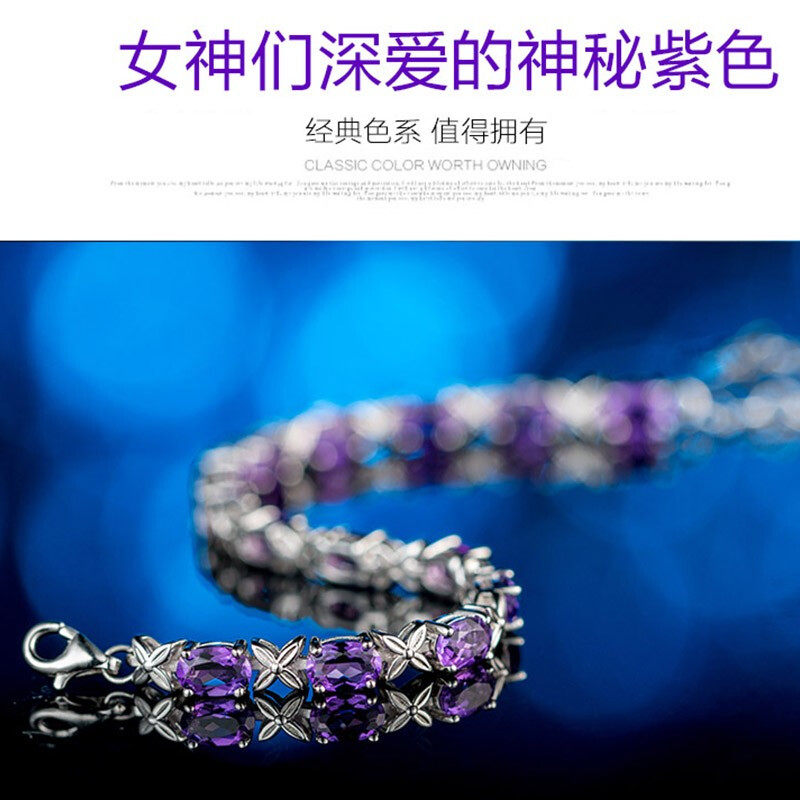 Luxury large particle amethyst bracelet + necklace + stud earrings luxury packaging set