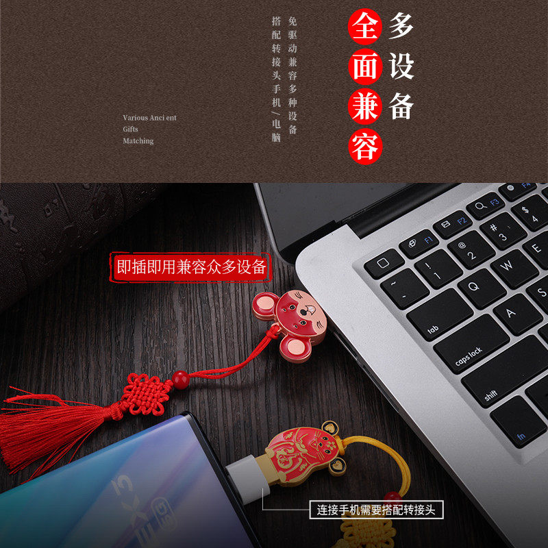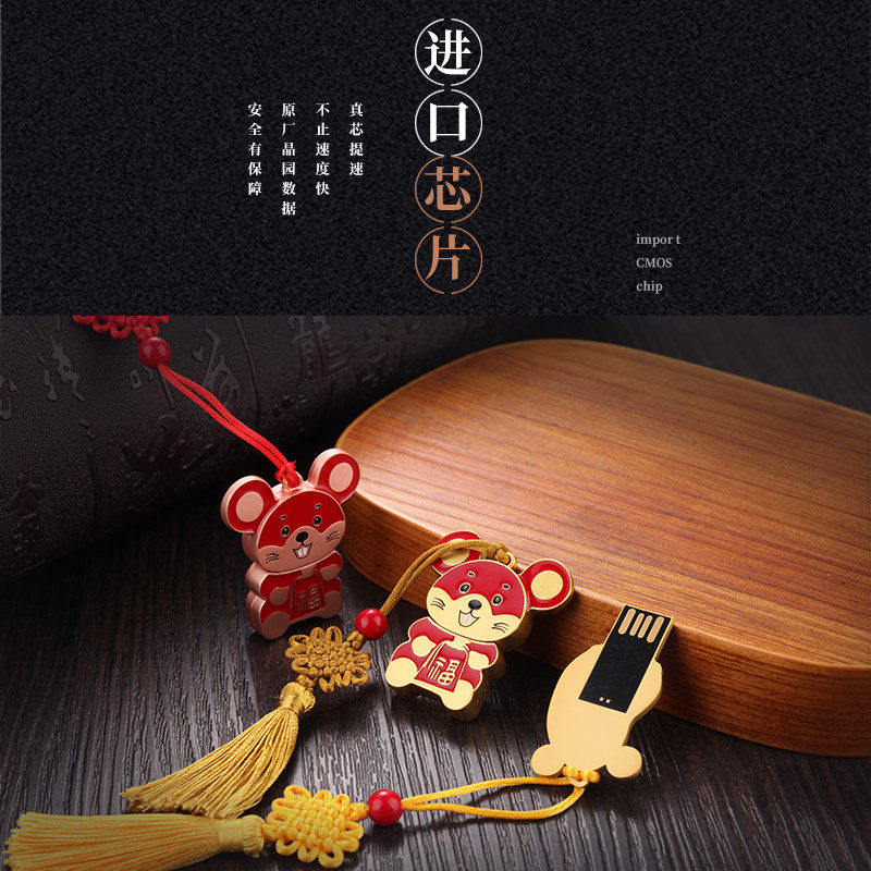 Portable disc 128g custom 2020 Year of the Rat souvenir Chinese style mascot annual meeting gift high-speed cartoon creative metal mobile phone computer dual-use car male and female students 128g solid state USB portable