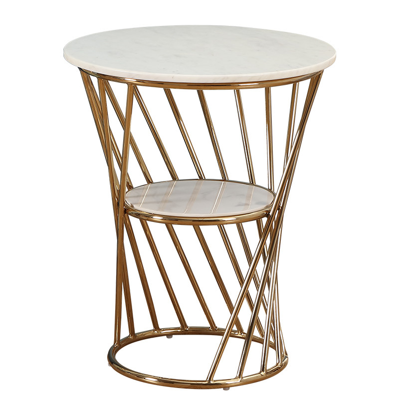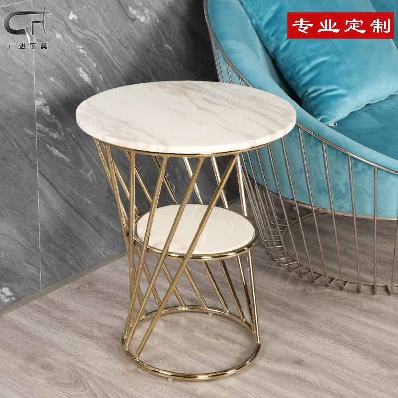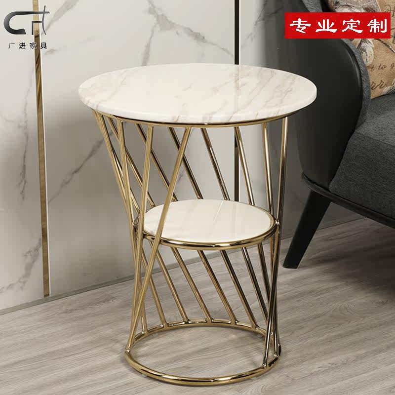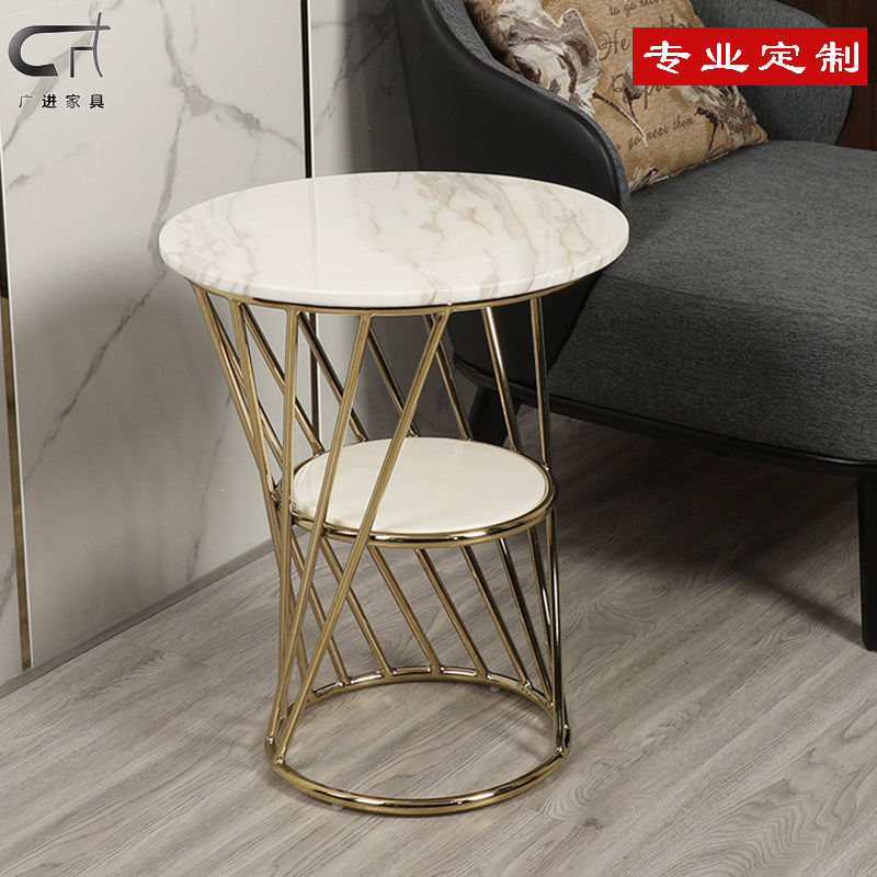 Light luxury marble side table Nordic modern minimalist stainless steel American creative small tea table round double corner table