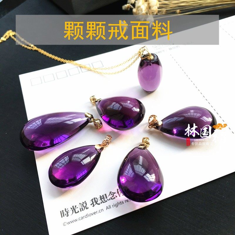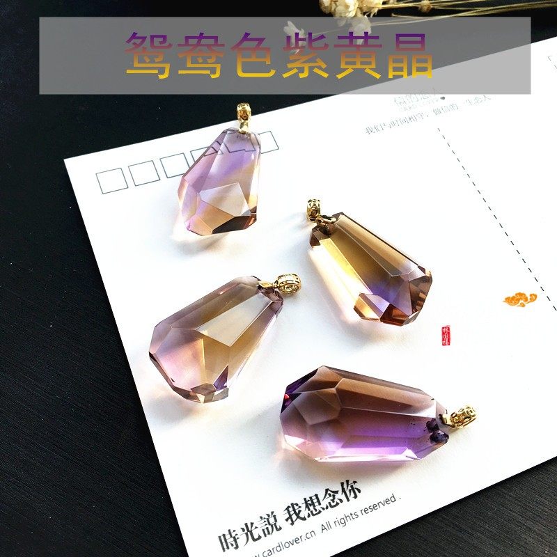 "Purple Yellow Mandarin Duck" high-end ring fabric natural amethyst 18k purple crystal pendant purple yellow crystal 18k gold inlay