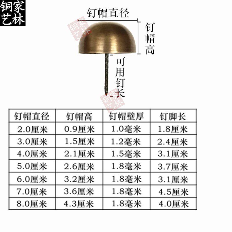 Bronze temple hardware Iron wooden door door Copper nail Brass anti-walking position round drum nail Decorative nail Antique copper cap nail