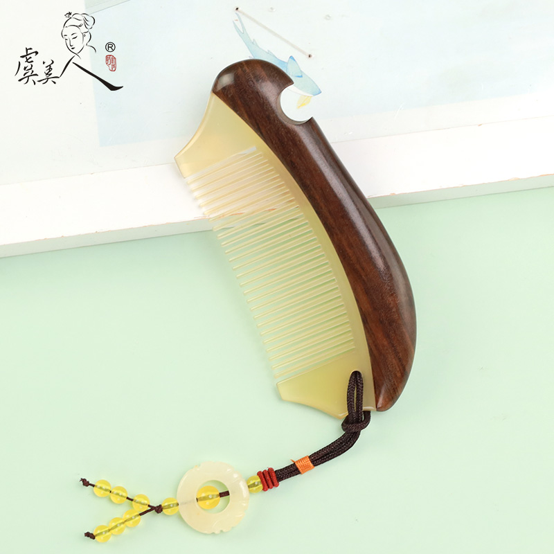Poppy beauty natural horn comb Wooden comb Birthday anniversary gift for male and female friends and girlfriends household lettering