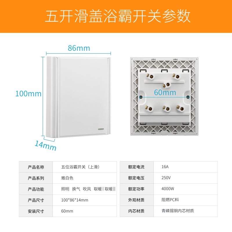 Bathroom warm air blower bath with five open switch 5 open control toilet superconducting bath bullies 5 upper sliding cover white waterproof-Taobao
