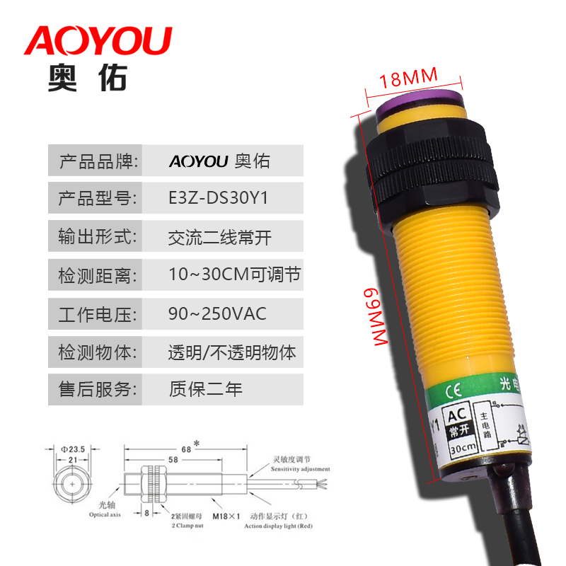 Original Diffuse Reflected Light electric switch E3F-DS30Y1 AC Two-wire Changer 220V infrared light inducers