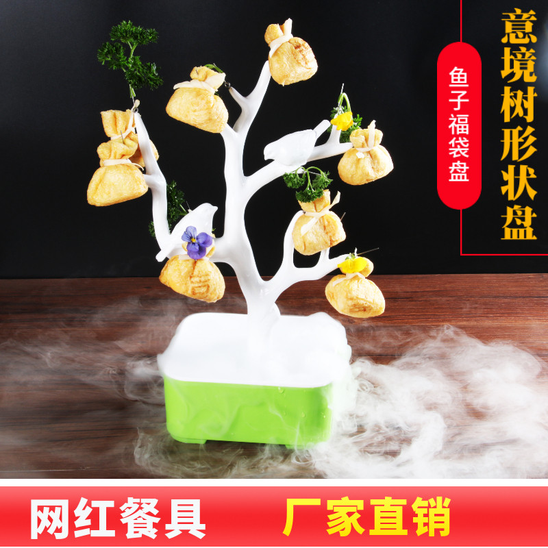 Dry Ice Smoke Treeked Hot Pot Tableware Net Red No Bull's Belly Rice Fish with Fish Son Fubag Creative Personality Pan