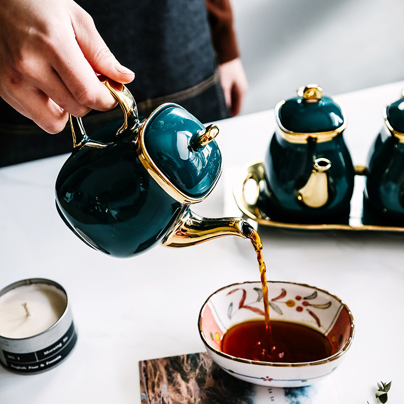 Light luxury seasoning pot emerald household ceramic soy sauce bottle seasoning bottle oil pot ingredient pot set with tray Nordic