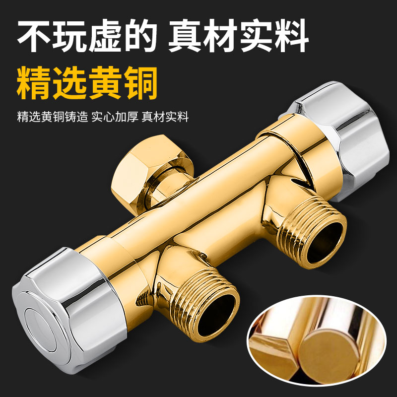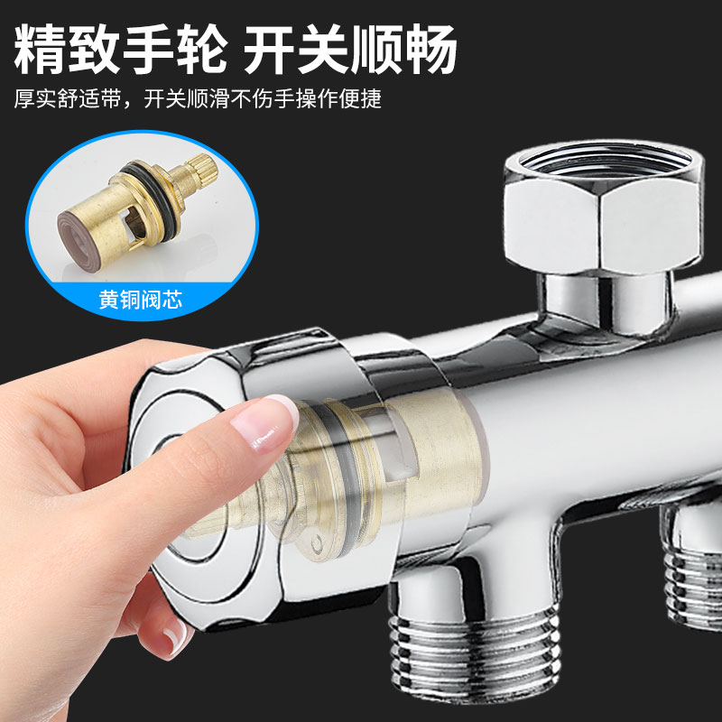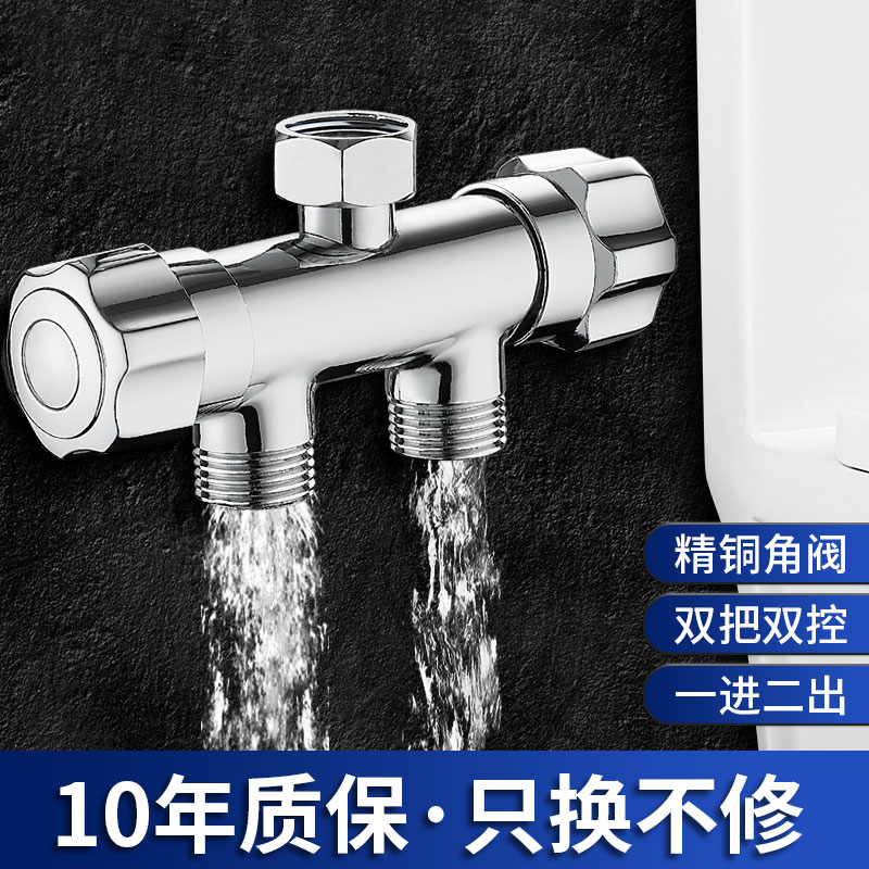 Four-minute inner triangle valve into two out water divider All copper washing machine faucet double outlet toilet thickened double head
