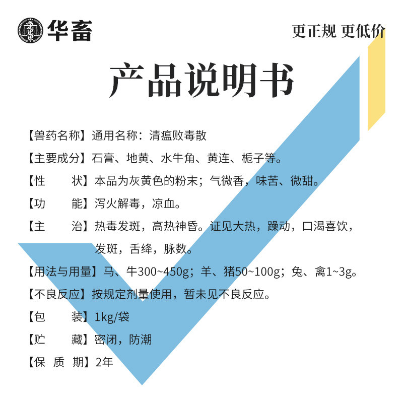 Huazhu Traditional Chinese medicine veterinary medicine Qingwen Baidu powder 1kg pig cattle sheep poultry medicine bird flu veterinary medicine