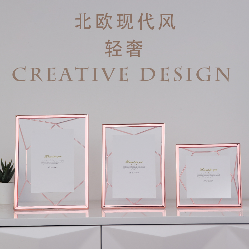 Creative geometric plant specimen Nordic metal photo frame table frame transparent glass photo decoration decoration office