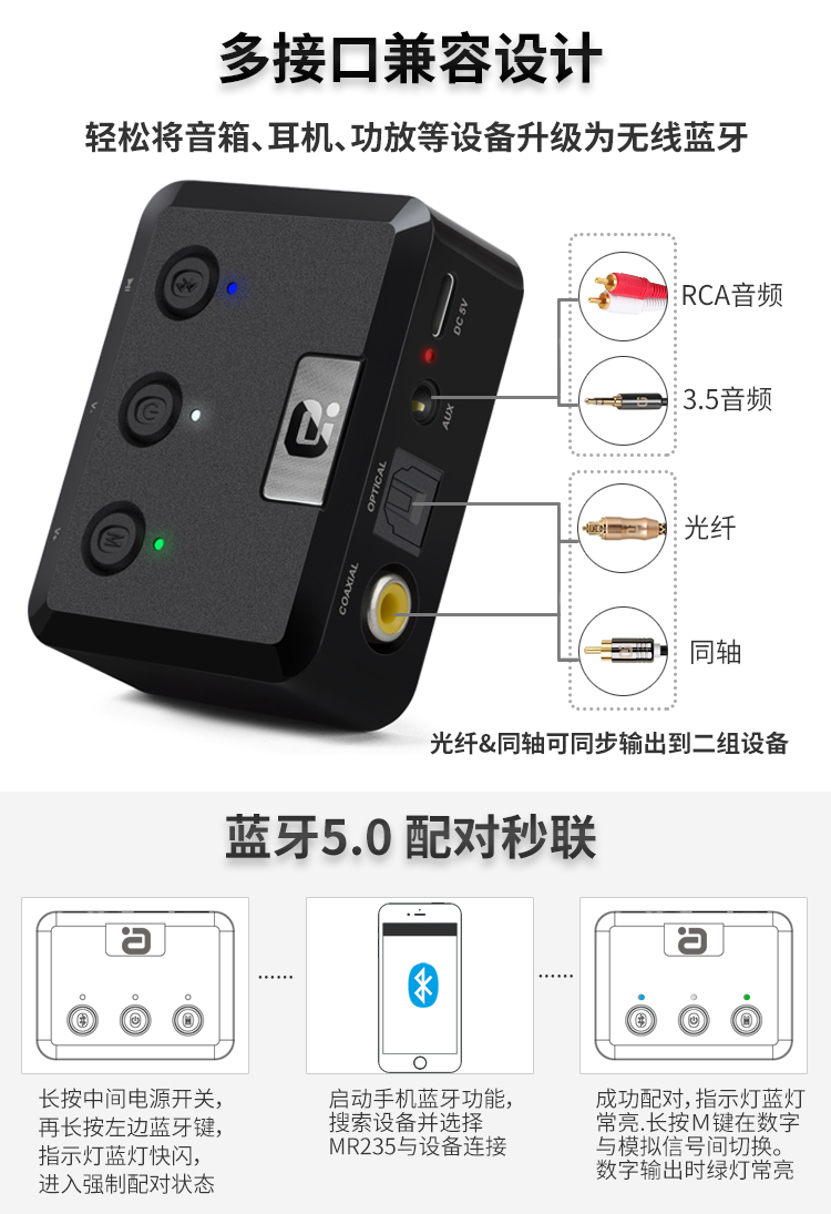 Bluetooth receiver 5 0 Audio Receiver power amplifier coaxial optic fiber aptx hands-free call MR235