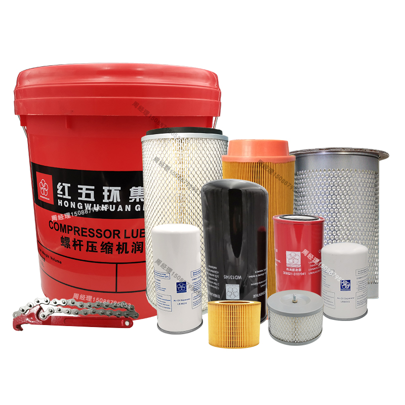 Red five ring screw air compressor accessories Daquan Air filter core Oil filter separator Screw machine special oil three filter maintenance