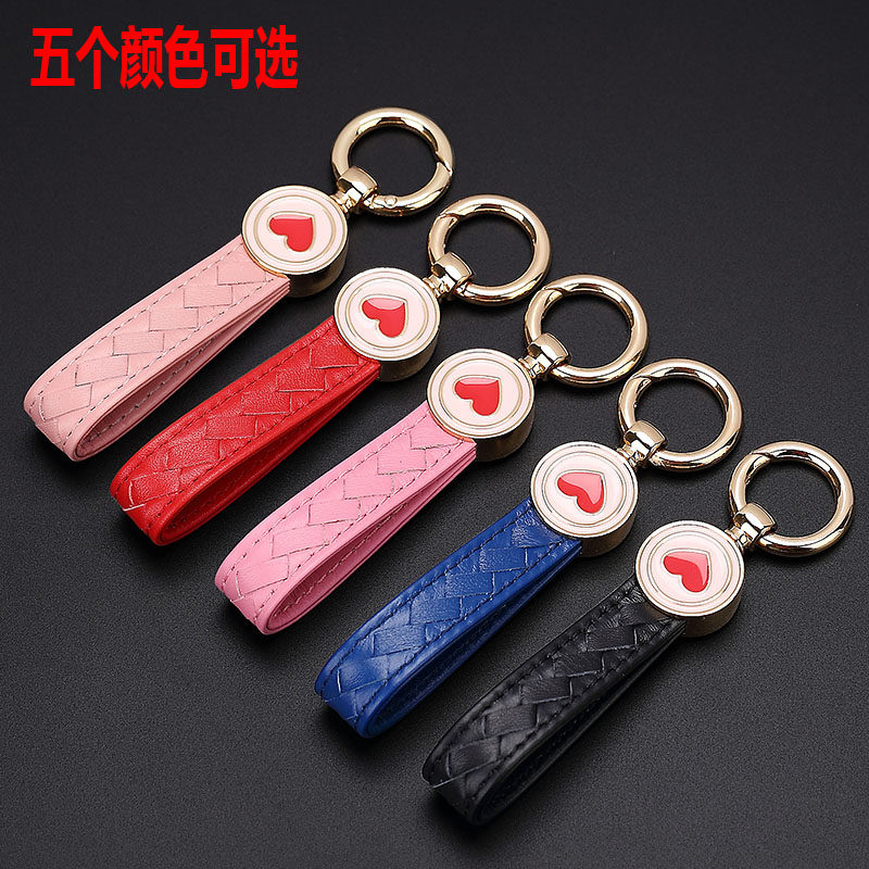 Car key chain female leather braided male key pendant Korean cute personality creative high-end key chain BV03