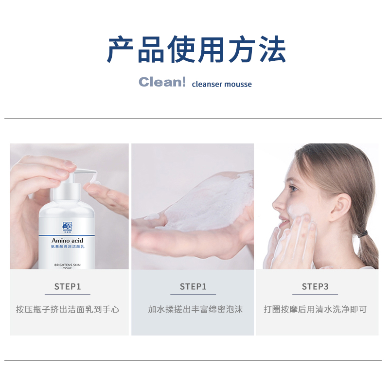 Qianming grass Amino acid foam facial cleanser cleans pores Moisturizing Moisturizing skin care facial cleanser Women and men gentle oil control