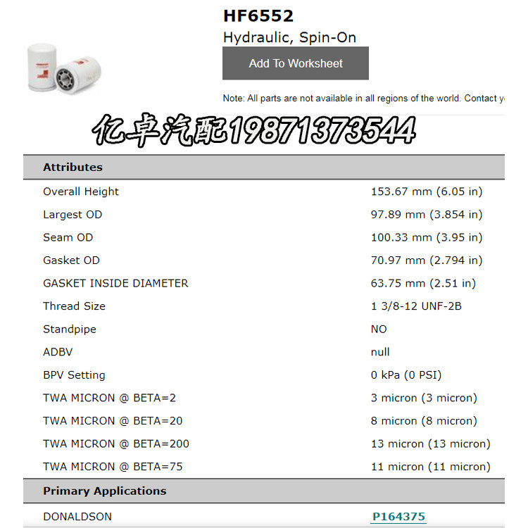 HF6552 HF6552 HF6517 P164375 WH945 2 WH945 BT8840-MPG H20WD 51455 hydraulic filter core-Tao