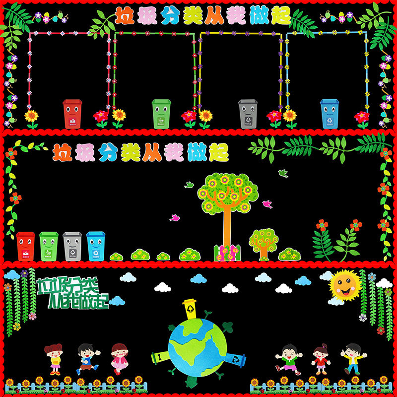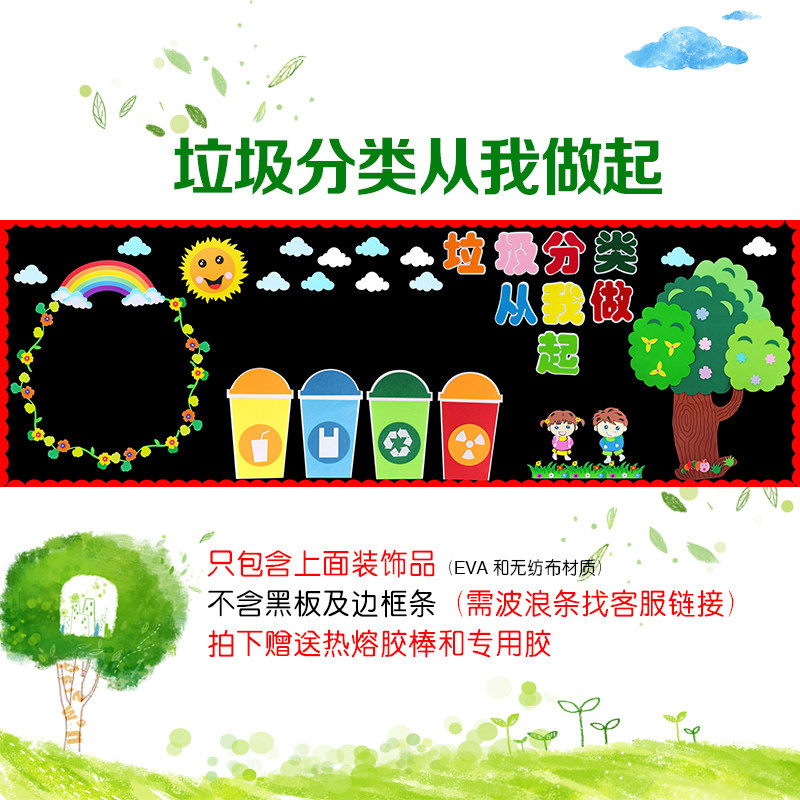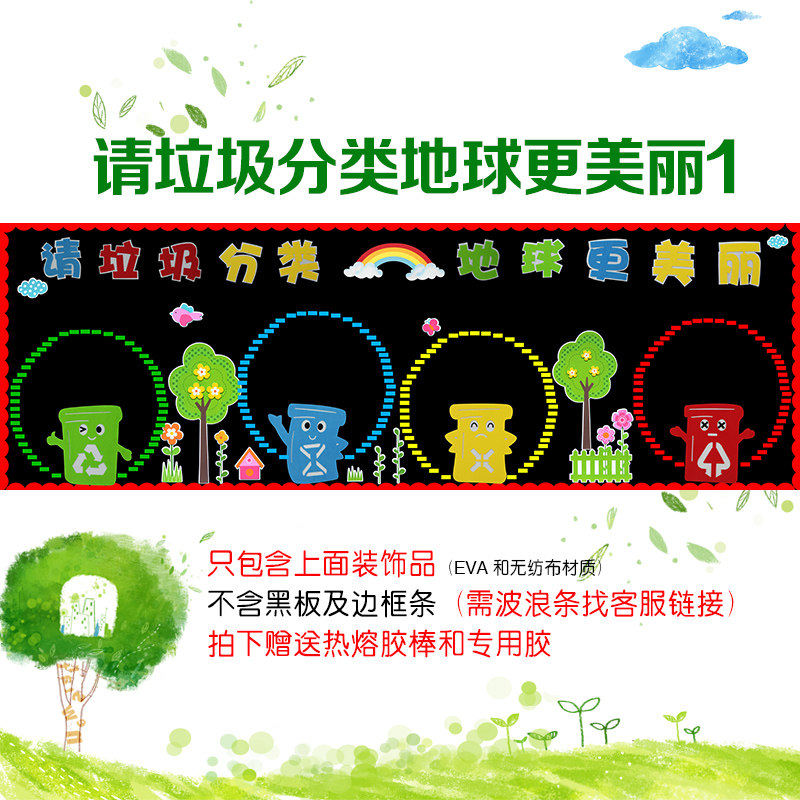 Garbage bins (4 packs) foam material garbage sorting from me (foam material) to protect the ocean (unwoven cloth) to protect the earth (unwoven cloth) to protect the earth from caring for the environment 1*3 meters