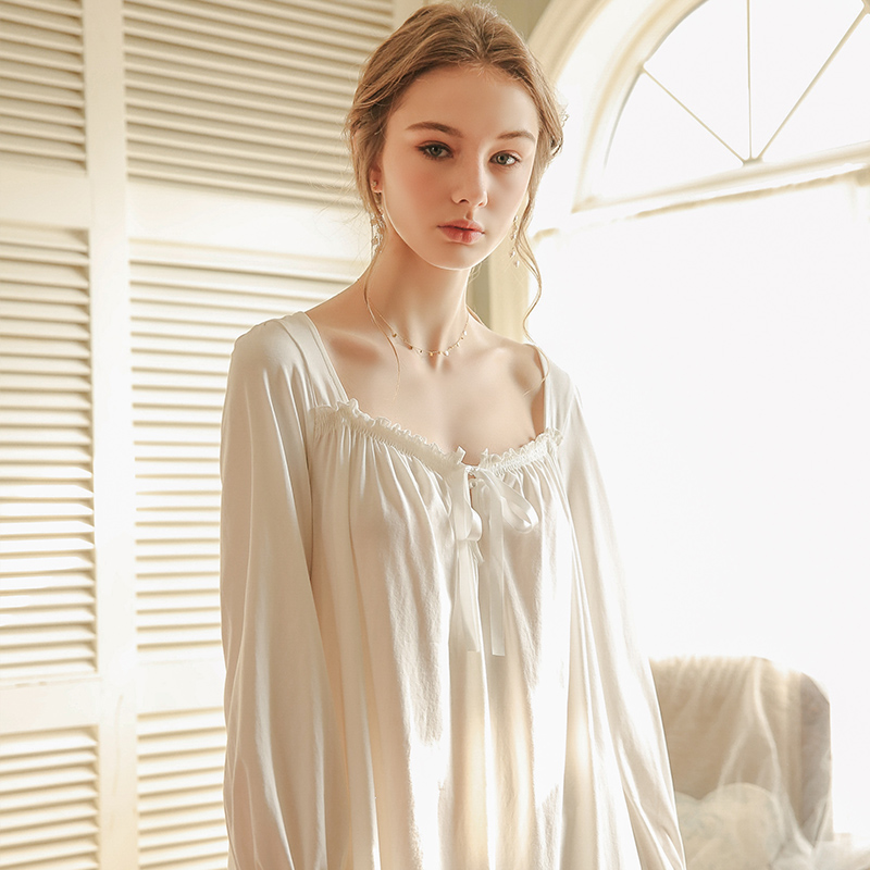 Spring and autumn sexy court style long sleeves loose cute princess nightdress long style pure desire French cotton pajamas women summer