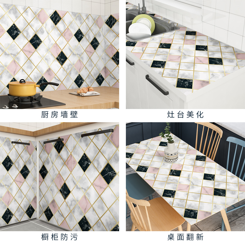 Kitchen table surface waterproof anti-oil sticker self-adhesive marble hearth table high temperature resistant furniture tabletop anti-crash strip film