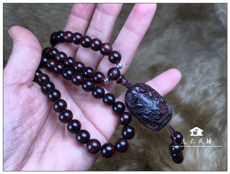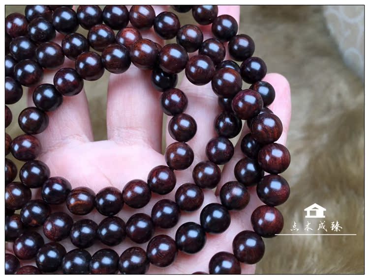 Wen plays Zhengzong Hainan yellow flower pear wood old material purple oil pear Buddha pearl 8mm Shunvein hand-string male and female hands to refine by 108