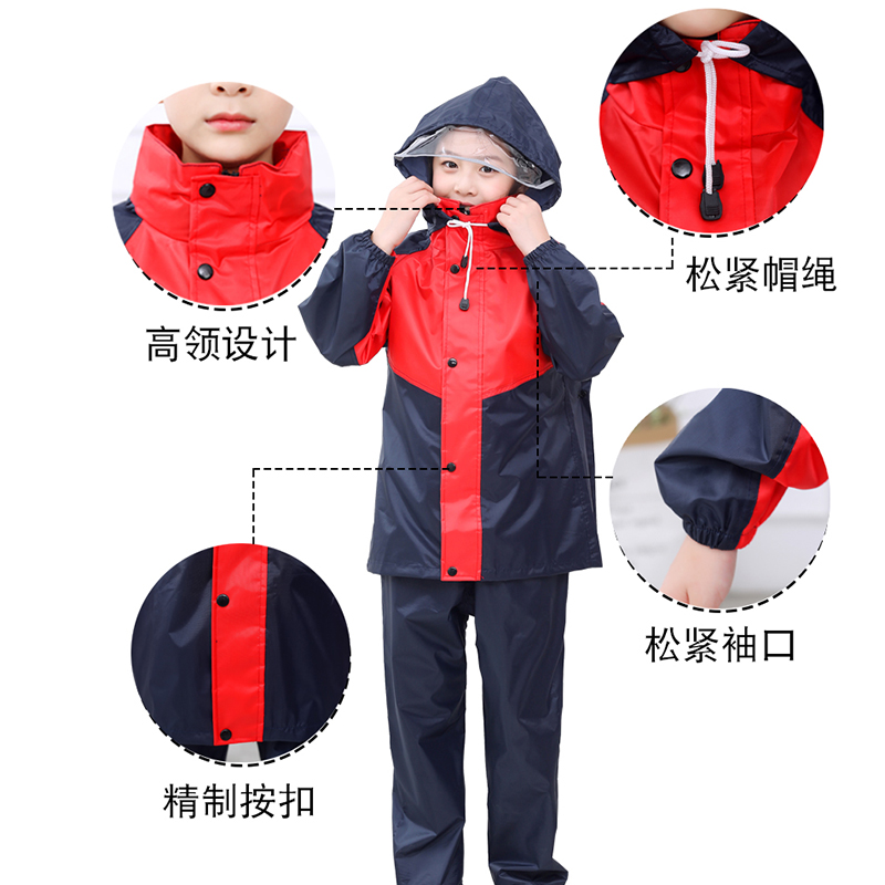 Zhongda children's raincoat suit Oxford cloth student rain pants Two-piece full body men's and women's children's thickened school bag poncho