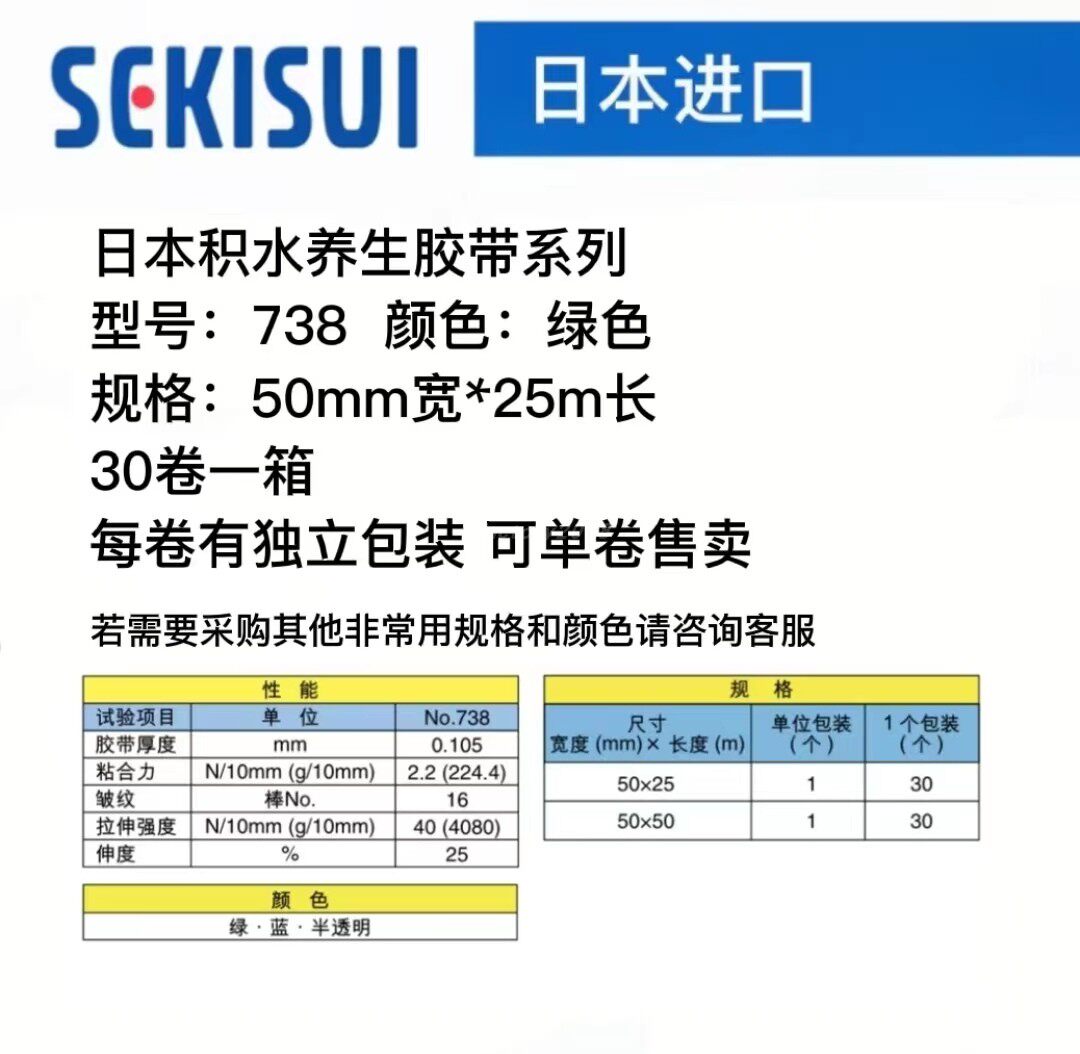 Japan imports SEKISUI Sekisui 738 health tape blue green translucent 50mmX25m