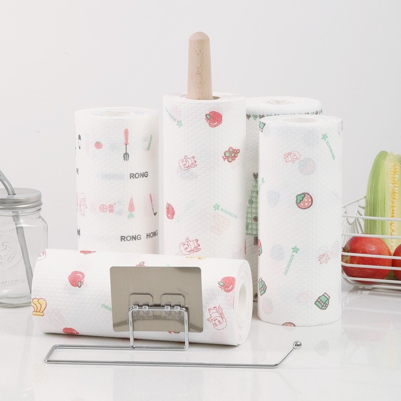 Kitchen paper towel wooden rack Roll toilet paper rack Desktop cleaning dish cloth Removable portable lazy disposable rag rack