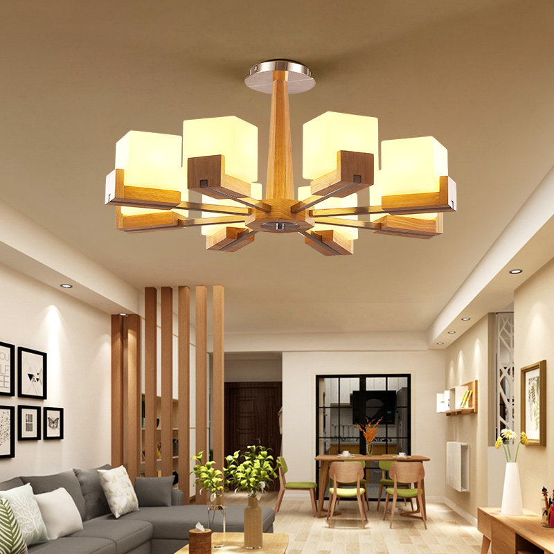 Living room chandelier Nordic modern villa hall lamps new Chinese atmospheric solid wooden home restaurant bedroom lamp