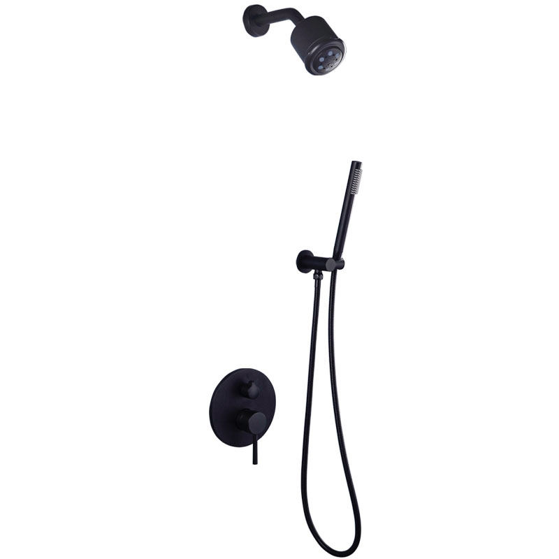 Fascso dark black embedded household shower into wall - style copper cold and hot tap sprinkler set