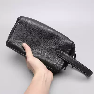 Men's bags, handbags, hand-held new handbags, men's leather casual first layer cowhide wash bag, soft leather, large capacity