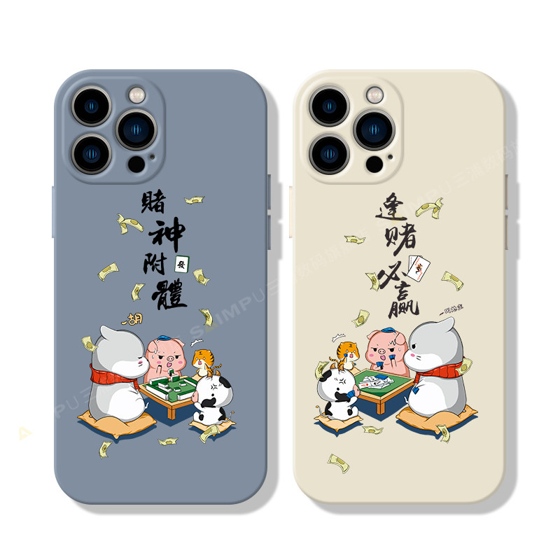 Mahjong Fat is suitable for Apple 13 liquid silicone phone protective shell 11promax good luck xr personality iphone12mini full bag self-touch 8p tide 7 original creative soft shell x