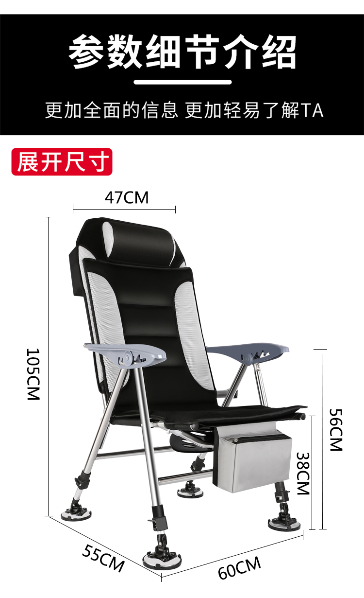 All-terrain stainless steel Han style fishing chair Thickened Folding Fishing Chair Multifunction Ultralight Portable Raft Fishing Bench Fishing Chair