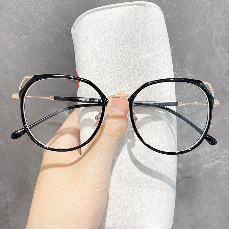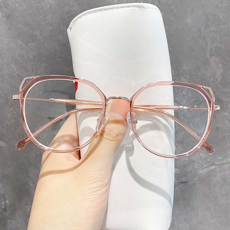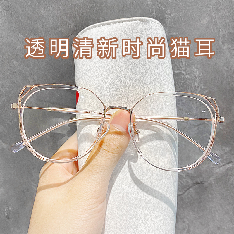 Transparent cat ear near view eye mirror Female Korean version Chauer anti-blue light radiation equipped with degree round face mesh red light frame