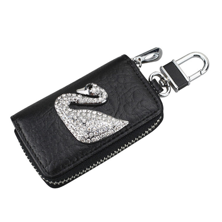 Swan Inlaid Drilling Car Key Bag Pearl Mountain Tea Flower Car Key Cover Remote Control Bag Car Interior Supplies Universal