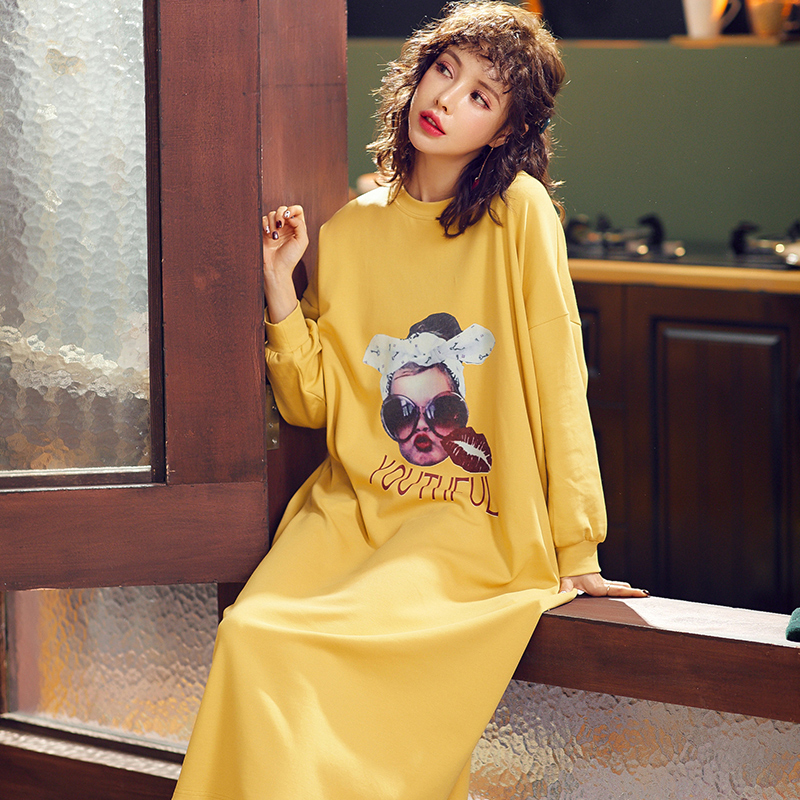 Antarctic People Spring Autumn Season Pure Cotton Pyjamas Woman Cute Cartoon Teenage Girl Long Version Sleeping Dress Han Version Loose size Sizes Home Clothes